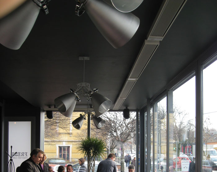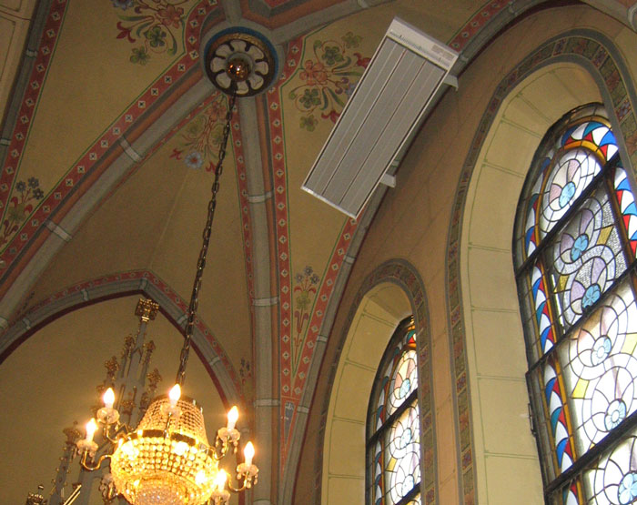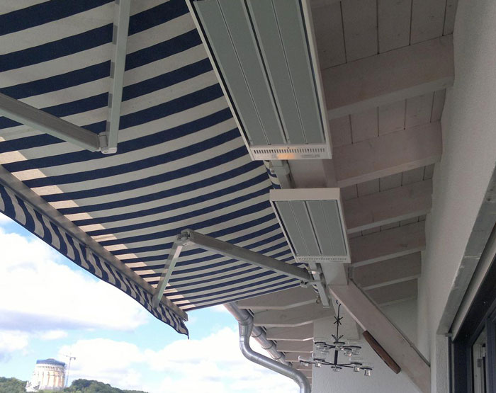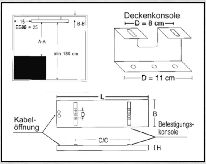 - Einfache Montage: Der Heizstrahler wird mit einer Konsole an der Decke befestigt, alternativ kann die Montage auch an Seilen oder Ketten erfolgen.